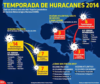 A partir del 15 de mayo de 2014 se iniciará oficialmente la temporada de huracanes sobre el Pacífico Oriental y desde el 01 de junio en el Pacífico Central, Océano Atlántico, Mar Caribe y Golfo de México, informó el Instituto Nacional de Meteorología e Hidrología (Inameh), ente adscrito al Ministerio del Poder Popular para el Ambiente.